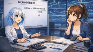 ROAは、会社が持っているすべての資産を使ってどれだけ利益を出したかを見る指標だよ。売上の大きさじゃなくて「効率」を見るから、会社の実力をシンプルに把握できるんだ。ししょのROEはなんとなく分かるけど、ROAは何を見てるんだ?資産って範囲が...