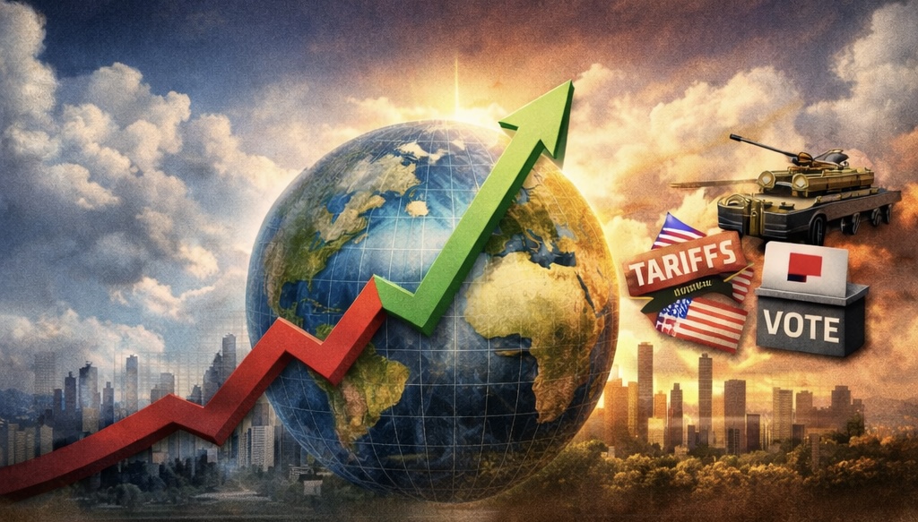 ししょの、2026年の株式市場は「金融政策は追い風寄り」なのに「政治・貿易・地政学の不確実性が値動きを荒くする」年になりやすい。結論から言うと、**“上がる余地はあるけど、簡単には儲けさせてくれない相場”**ね。